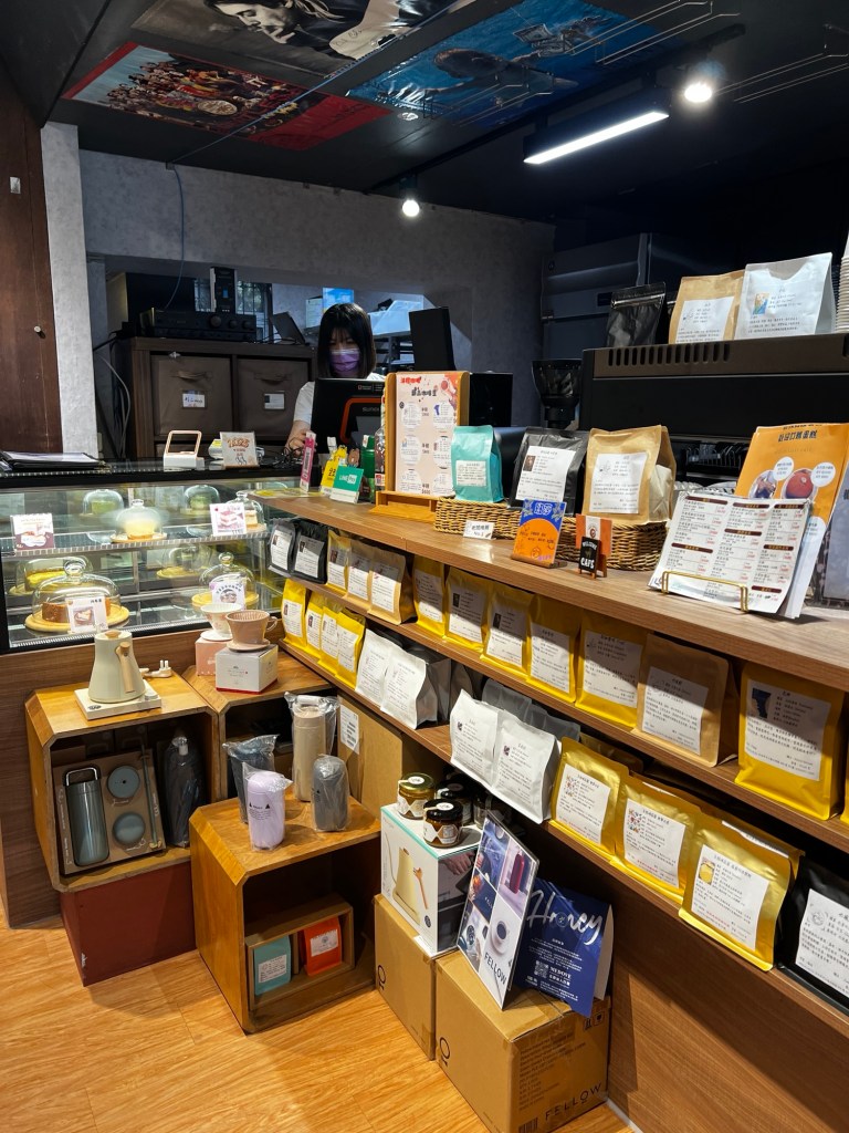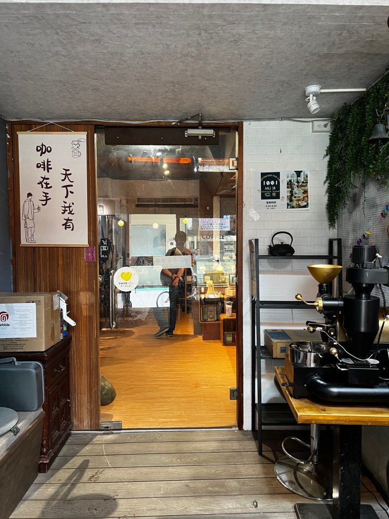咖啡館大門口放了一台小型烘豆機,顯示是自家烘焙的咖啡豆。店內的裝潢爲木質調,木製吧檯櫃販售各產區的豆子和一些咖啡器具,音響播放歐美的流行搖滾音樂,給我一種在美國開車敞徉在筆直公路的自由感。