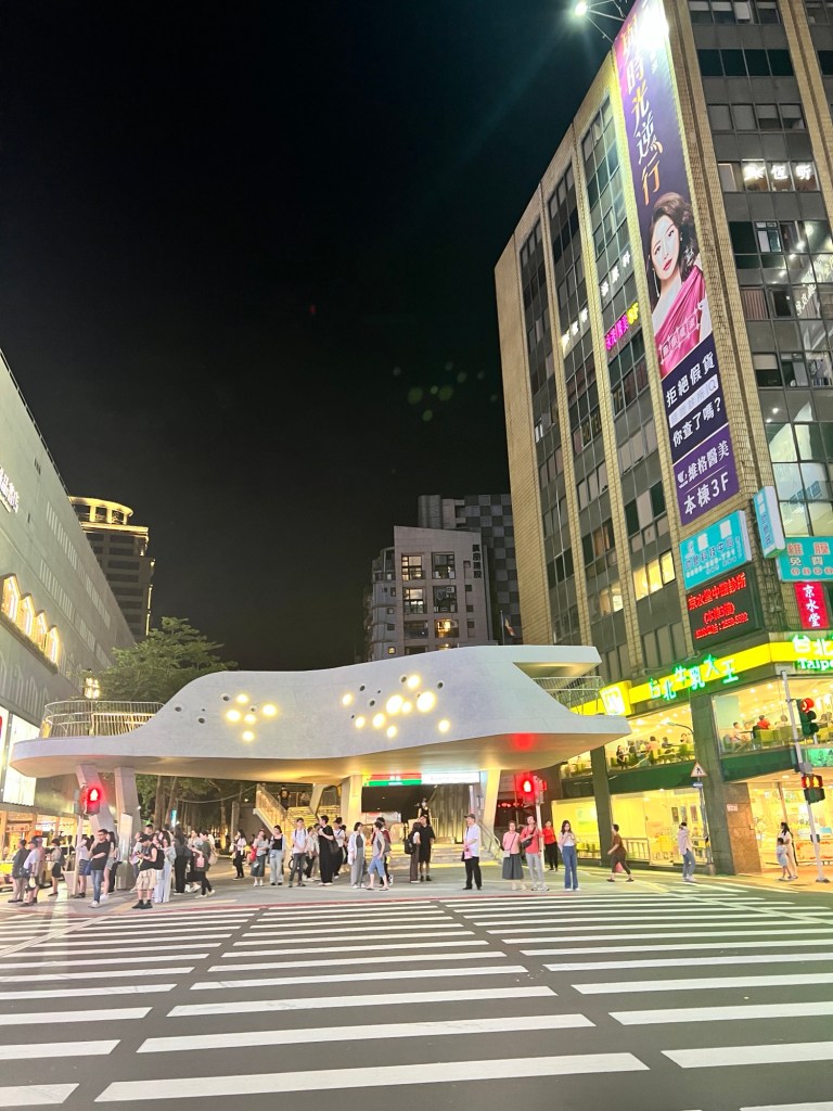 雖然是夏天,但今晚有涼風,晚上在外面走還算涼爽,捷運中山站人潮依舊不少。平日晚上沒有市集我反而比較喜歡,因為這樣散步起來比較寬闊,也可專注享受在心中山線形公園本身的硬體規劃。
