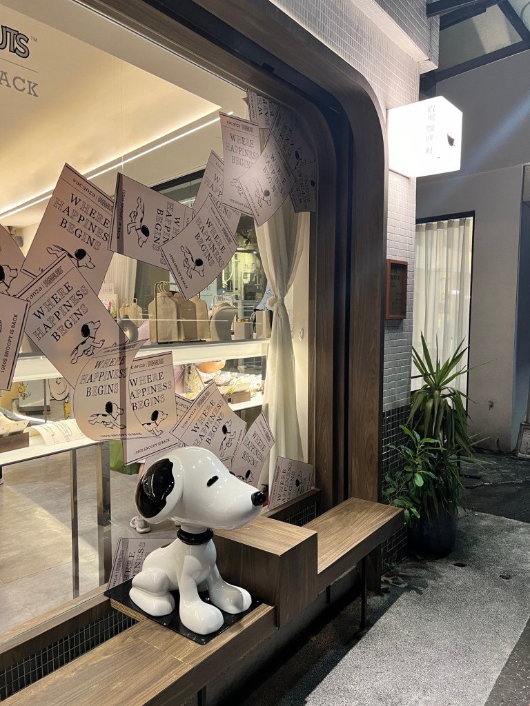 Vacanza飾品店在北段這邊,我看到共三家店,其中一家兼賣雞蛋糕,而且在店前的長形坐位區有一隻史努比,喜歡吃雞蛋糕的我,便買了一份與史努比共享。