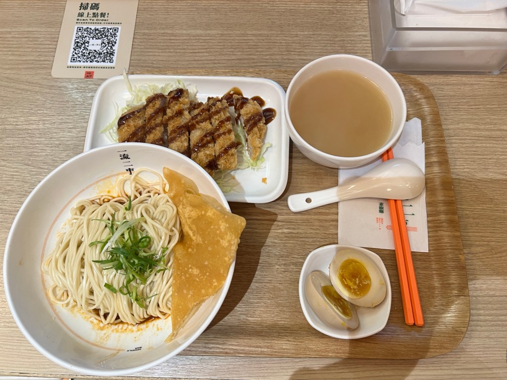 原來這家店也有葷食,點了炸豬排素椒麵,拌麵醬是特色,麻麻香香的,麵條也軟硬適中,不錯,而且可以吃很飽。