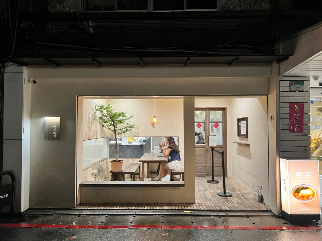 這是一家甜品店,店的外觀很美,很吸引人想進去消費。店家主要商品是豆花,生意非常好,幸好平日下班還不太需要排隊,一進來還有幾張坐位。