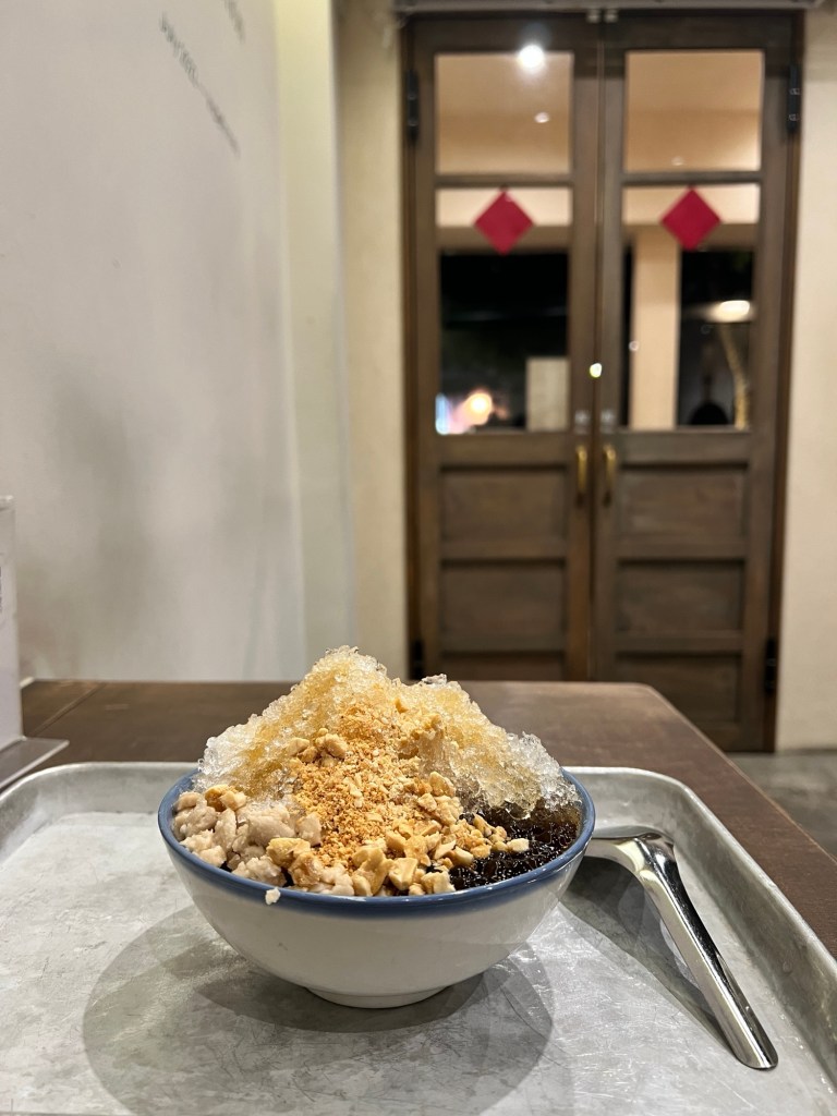 點了花生系列+粉圓的豆花,感覺甜湯就是花生糖的甜味,所以只有一點甜,吃的就是原味;豆花口感厚實,有點接近嫩豆腐,一整碗吃下去蠻飽的。