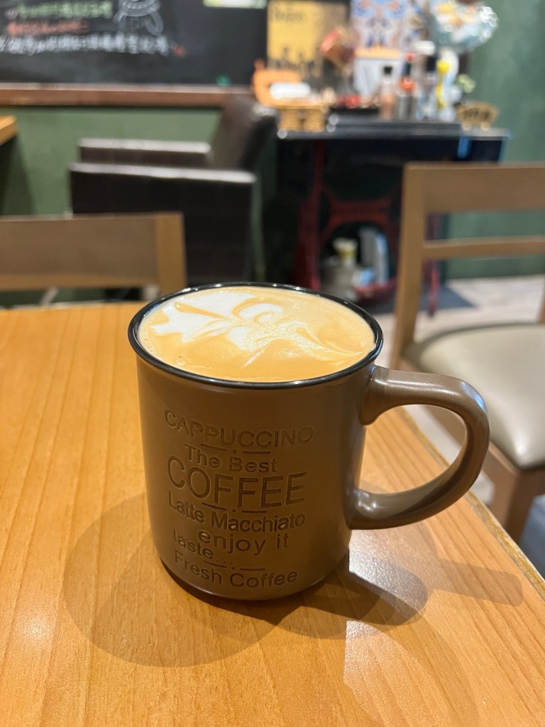 雖然吃的很飽,我還是在餐後點了一杯熱拿鐵,75元很大一杯。拿鐵水加比較多所以喝起來比較淡,但奶泡打得還不錯。