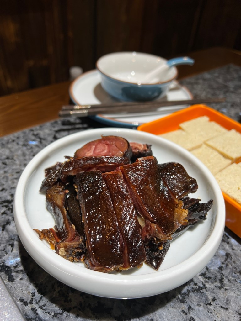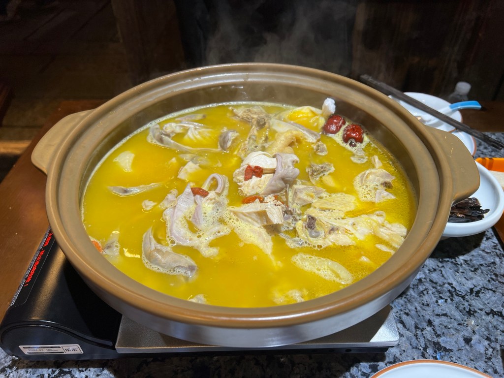 景區的管理者果然深知遊客的需求,餐廳都開在入口處,此時已是晚餐時間,飢腸轆轆的我們就在這間「明月樓」吃晚餐,原因是天冷想喝雞湯。由於烏鎮裡所有的一切都有一套品質標準,所以食物都不難吃。