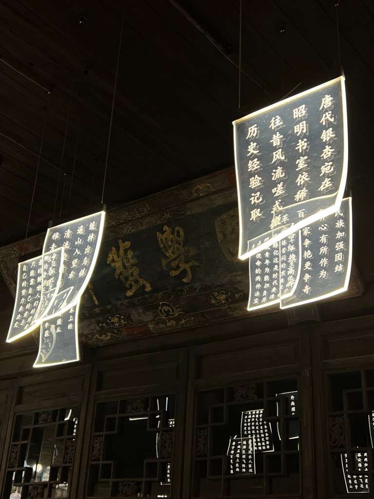 烏鎮裡面有做鐵鍋的、釀醬油的、聽戲的場所可以逛,但夜晚我覺得最漂亮的就是昭明書院,沒錯!就是編選昭明文選的南朝梁昭明太子蕭統,曾在此讀書的書院,裡面賣的文創商品都充滿文學。