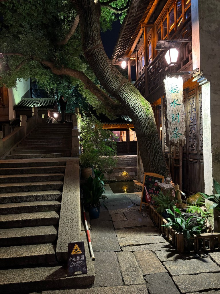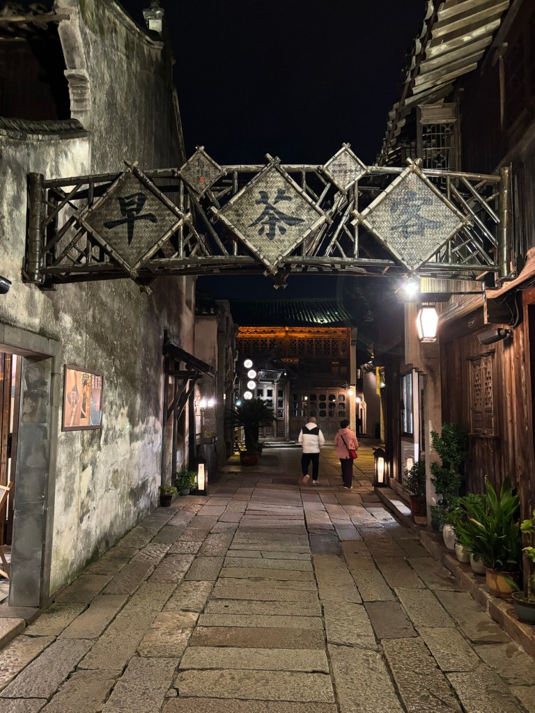 這邊有個小提醒,在Trip.com預約機場接駁的車子時,終點若是在景區內住宿的飯店,預約時最好寫「烏鎮西柵歷史街區或景區」。因爲景區不小,飯店離景區入口有一段距離,若是像我這次寫我位於景區內的飯店名稱,司機就在與飯店平行但卻是隔著牆的景區外面把我們放下(也有可能我遇到爛司機,因為他急著去接下一單),所以我們得拖著行李在青石板路尋找景區入口,幸好走了約15分鐘,但當下人生地不熟的,遇到這種狀況真讓人無語。