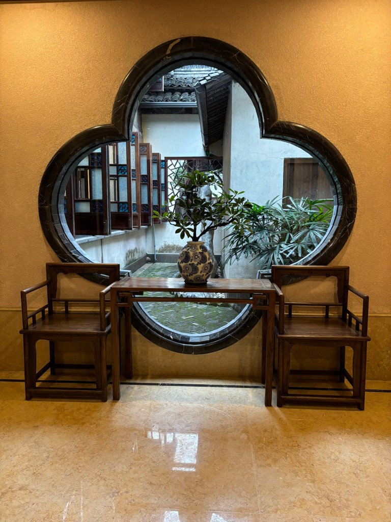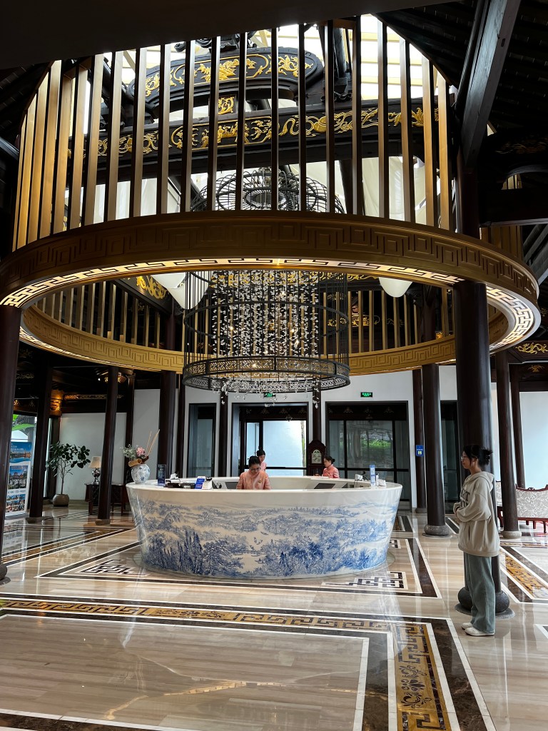 酒店建築採用明清時期江南民居風格,白牆黛瓦,木格窗櫺、搭配庭院與水景、曲徑幽深,營造出寧靜雅致的氛圍。室內裝潢在保留古韻的同時,融入現代化設備,如地暖與智能系統,可謂「外古內今」。