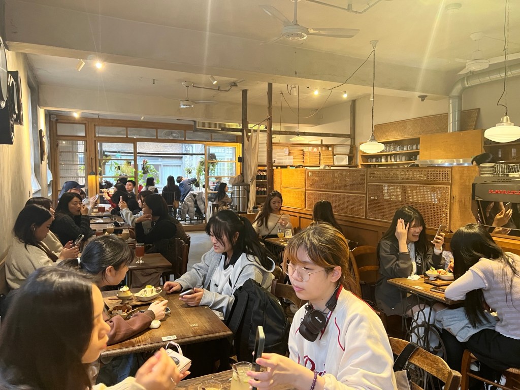 以為平日應該不用等位置的我,真是小看網紅咖啡店的魅力,一到門口就已經有一大團的韓國年輕觀光拿著號碼單在等待。