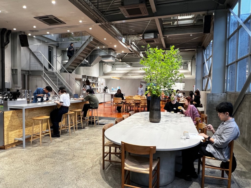 清澄白河的藍瓶咖啡由舊倉庫改造而成,挑高空間、大面玻璃和簡約設計混合出日本與加州風格的融合感,是拍照與放鬆的好地方。
